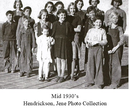 Many of the children walked or rode horseback to school. Wesley Burns road five miles each way to complete the 8th grade. Getting to school on very cold days was difficult. Mrs. Lachenmaier remembers rubbing Anita Inabnit’s feet when she arrived at school in tears on a very cold morning after the usual walk. The children enjoyed sliding down the hill just southeast of the school.