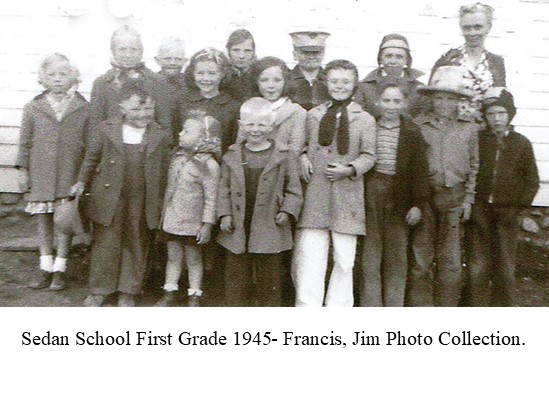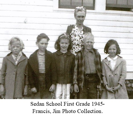 In September and part of October 1943 there wasn’t a teacher in Sedan School. So, the children just didn’t go to school or some went other to other schools until a teacher was found for Sedan School. Marvin Miller was to start school in 1943 so he went to Bozeman Schools for about 6 weeks while waiting for class to start in Sedan. When a teacher was located school began in October of 1943.