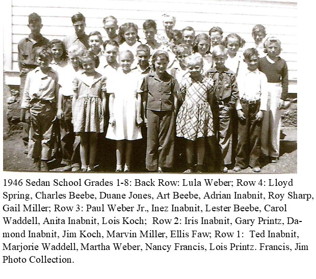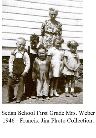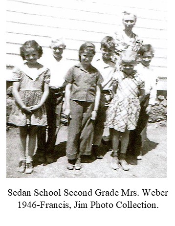 1945 – 1946: Mrs. Lula Weber taught for “3 or 4 years” and her children Martha Jean and Paul attended the Sedan School. She was Anita Inabnit’s 5th grade teacher.