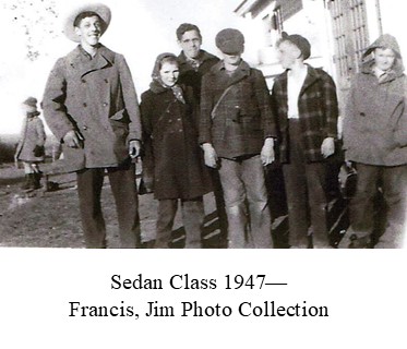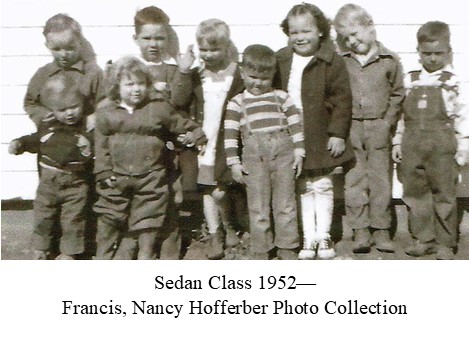 1942: During World War II years, Sedan had difficulties hiring and keeping teachers. For this term, Francis Jones Hewitt, local housewife with teaching certificate, conceded to teach as a substitute only, she started the year on September 14, 1942.