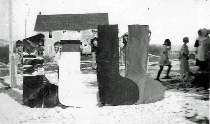 Ardyce Inabnit recalls, “The driver in the winter would cut through the fields and cross the barb wire fences that were buried in the snow. One day the kids got the bright idea to all shift to one side to make the sleigh rails cut deeper in the snow. The sleigh tipped over and a fence post rammed through the canvas cover. Apparently there were no serious injuries.”
