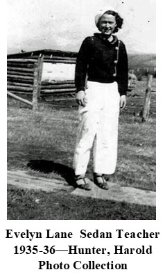 1921 Sedan School acquires a school wagon. The “school wagon” was a spring wagon made out of a grain box, according to Warren and “larger than most buggies, covered with a rectangular canvas top. The tailgate had a door in it and outside steps could be turned down for entering. Inside benches on each side of the box provided seats for maybe a dozen children. I can remember it being used only one year, or part of a year, when Hurley Godwin, a bachelor ranch hand who was employed by various ranchers during busy seasons, drove the team. It wasn’t very successful, probably because it took too long to drive a team around the country road that circled the valley. First students would have to get on the wagon about 6:00 a.m. in order for it to make the circle and get back to the schoolhouse by 9:00.”